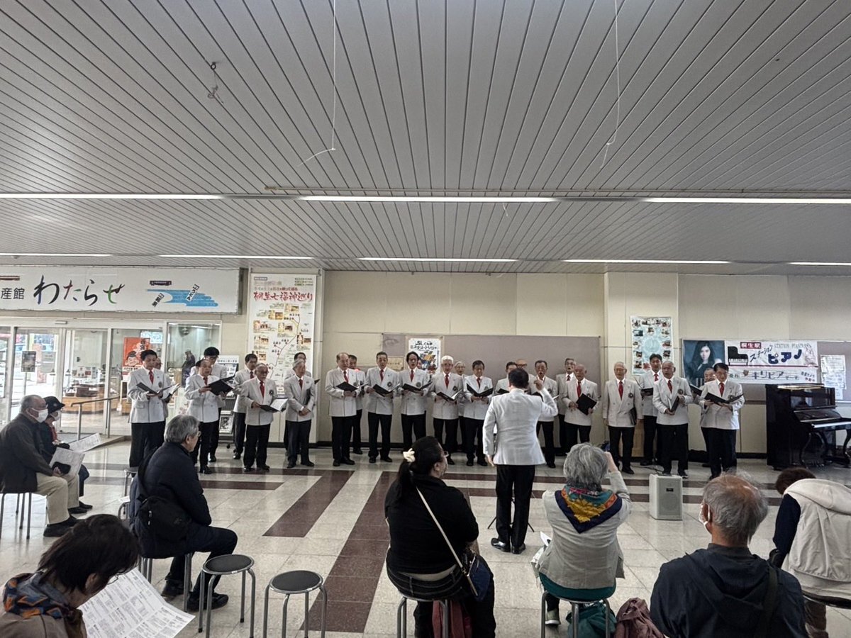 コロ・フェスタin桐生に来ています。駅前とドンキ前で元気に歌いました。他の団体も上手で、また趣向を凝らした企画も楽しめました。今日は演奏会。ターフェルトーンをお聴かせできるよう頑張ります。 #合唱 #桐生 #団員募集 #ハーモニー #呑み会 #趣味 #友だち pic.x.com/v9NQq7qSoh