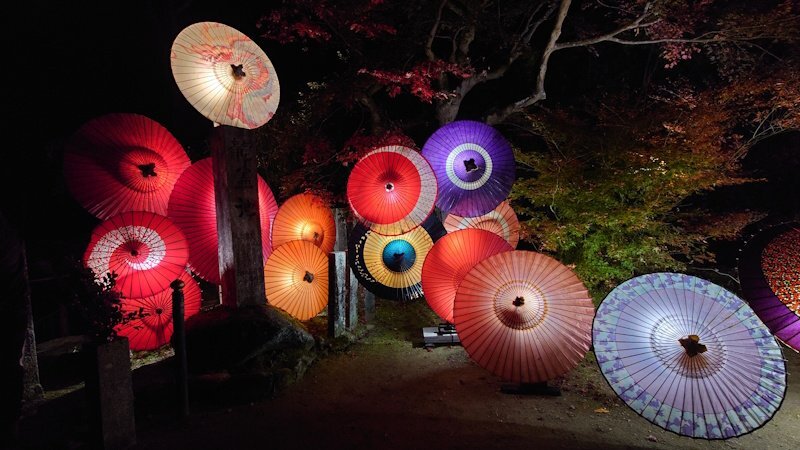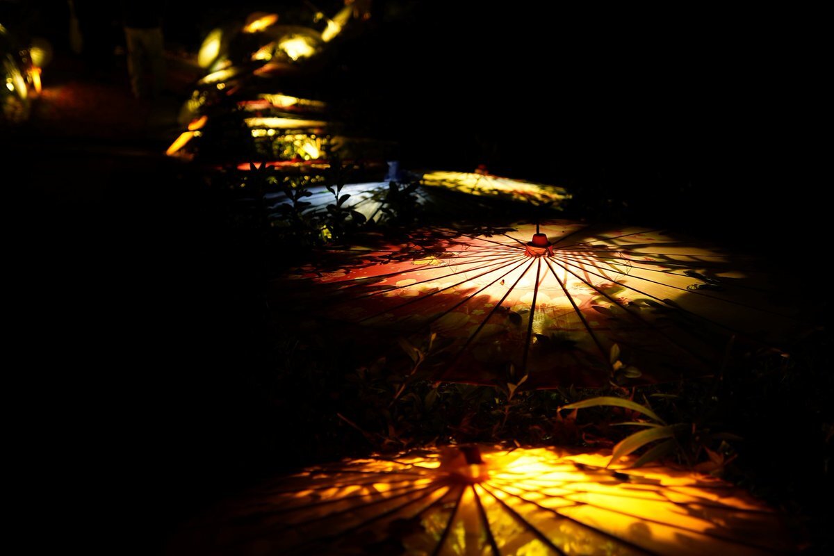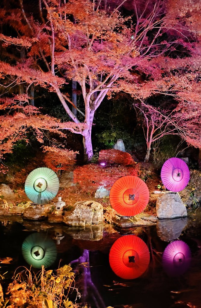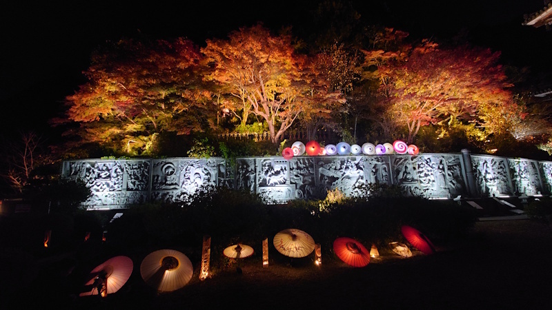 『光の巡礼〜和傘アートで繋ぐ巡礼の旅〜』 和傘と紅葉と天竺渡来佛伝図レリーフ「釈迦一代記」のライトアップ @壷阪寺/2025.11.23 #紅葉 #夜景 #ライトアップ #和傘 #写真好きな人と繋がりたい #旅行好きな人と繋がりたい pic.x.com/1mOwpMmOEk x.com/allabout_meish…