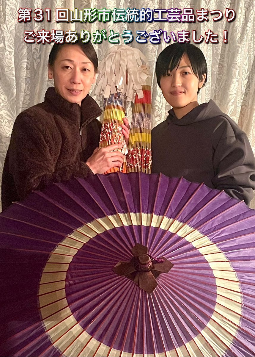 第31回山形市伝統的工芸品まつり終了しました❗️ 和傘をご購入頂いただけでなく、皆様からたくさんの温かい言葉を頂きました🥲✨この2日間は私の和傘人生にとってとても重要な時間だったと言えます。 少しずつですが、作品やできることを増やして成長していきますね💪 #和傘 #山形和傘 #伝統工芸 pic.x.com/MWmUOBAwPV