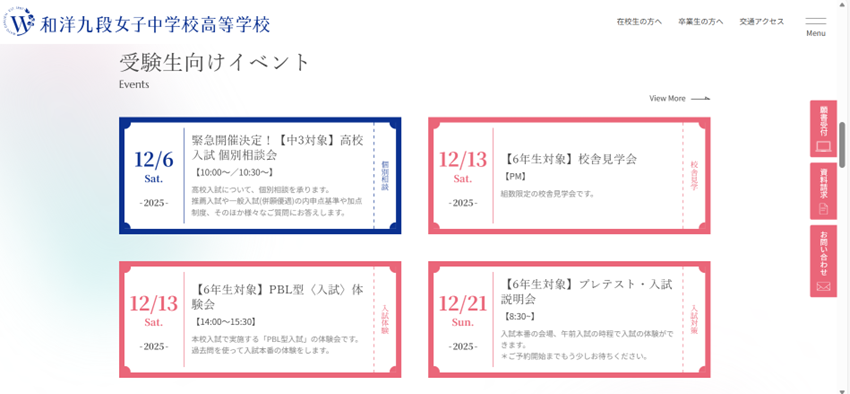 【和洋九段女子中学校高等学校 12月の受験生向けイベント】受験生向けイベントのご案内です。詳しくはこちらからチェックしてくださいね。 wayokudan.ed.jp 皆様とお会いできること楽しみにしています! #和洋九段 #中学受験 #高校受験 pic.x.com/VCqu7UG7ve