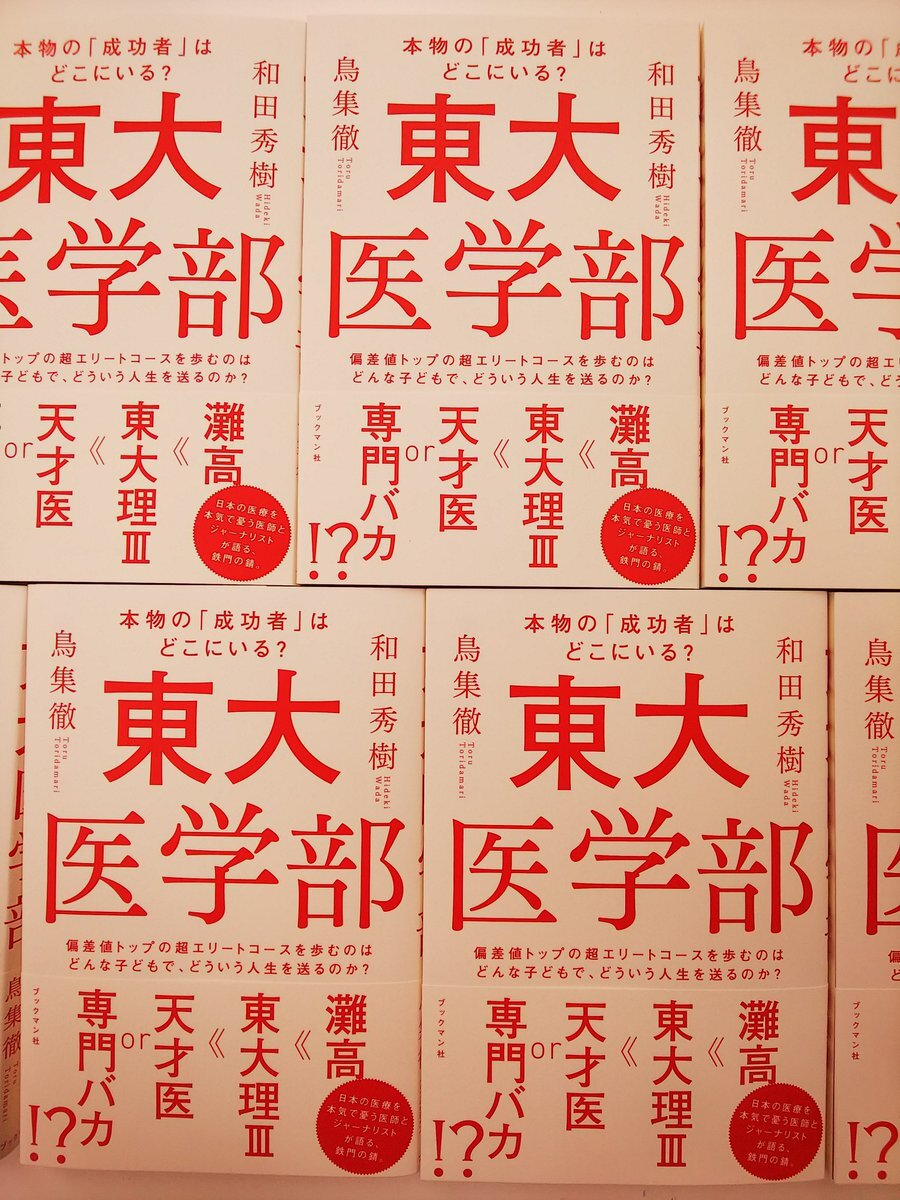 ブックマン社、秋の新刊ラッシュです。第一弾はこれ! 【#東大医学部】#鳥集徹 × #和田秀樹 灘高 → 東大理Ⅲ → 天才医 or 専門バカ? 偏差値トップの超エリート道を歩む人間はどういう人生を送るのか? 東大医学部OBの方、理Ⅲを狙っている方、東大卒医師との結婚を夢見ている方……必読です。