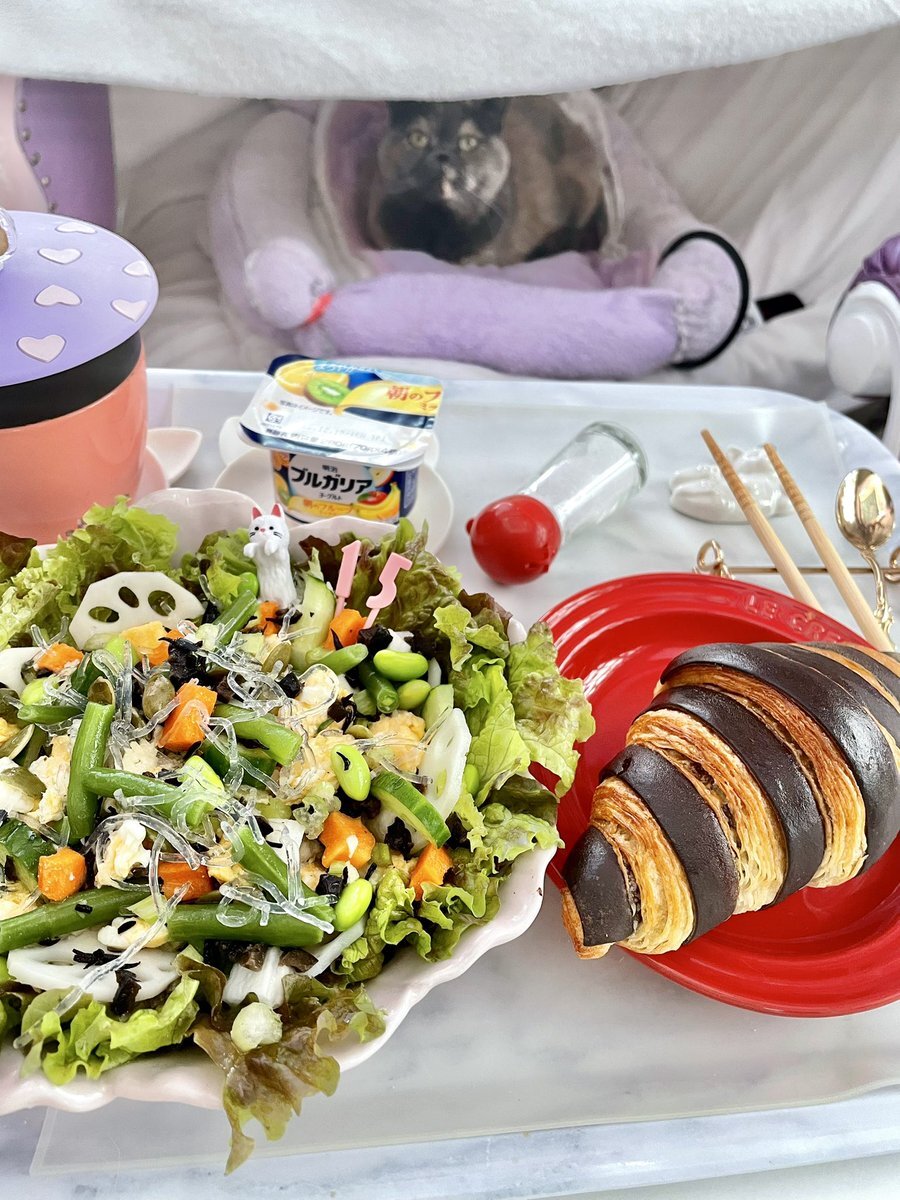 おは♪ ママの病院行くから 寝てたいけど早起き〜💦 ママに休みは ありませんっ! #エキゾチックショートヘア #あさラダ #15種のサラダ #ブーランジェリー #品川駅 #チョコクロワッサン pic.x.com/xGfZ920Uwv