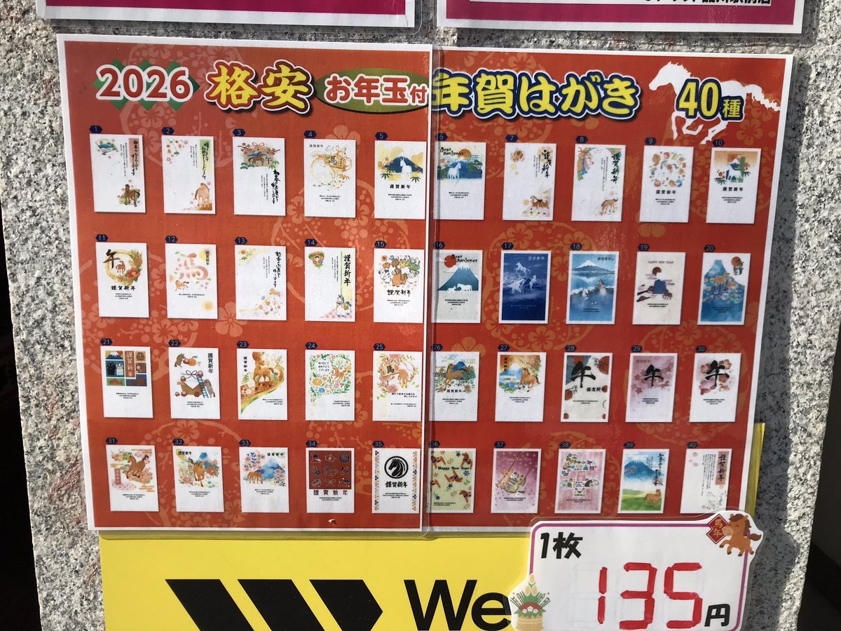 🐎2026年の年賀はがき販売中🐎 無地の年賀はがき入荷しました❗️ 1枚 84円(普通紙・インク・ディズニー) #絵付き年賀はがき は1枚135円 40種類の王道の縦型デザインから選べます♪ 皆様のご来店をお待ちしてます⭐️ ☎️03-5421-2261 #企業公式冬のフォロー祭り #年賀はがき #年賀状 #午年 #品川駅 pic.x.com/2w4Ujo8YEM