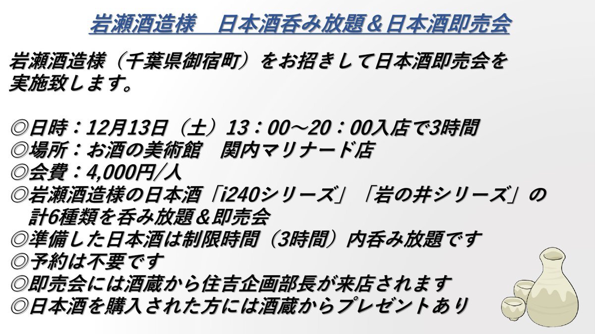 今回も「日本酒吞み放題企画第32弾 唎酒師オーナー厳選の日本酒を呑もう!」に沢山のご参加ありがとうございました。 来月は「岩瀬酒造」様をお招きして、試飲会&即売会を予定しております。 #お酒の美術館 #関内マリナード店 #マリナード地下街 #日本酒好きと繋がりたい #日本酒会 #BAR #唎酒師 pic.x.com/OR1kmjcrYK