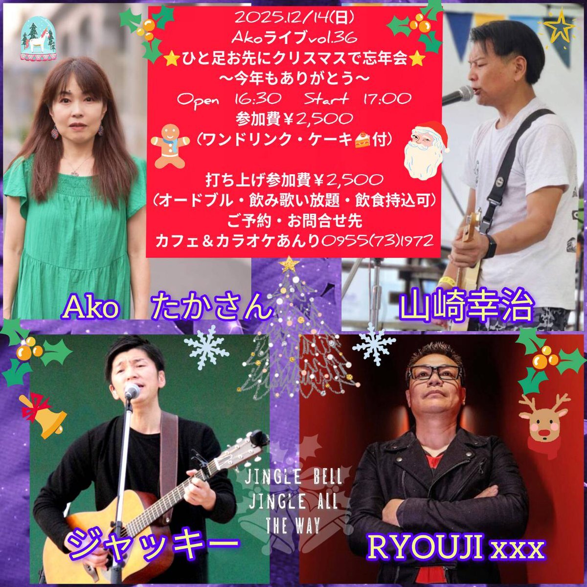 【Akoライブvol.36】 2025 12/14(日) o16:30/s17:00 [会場] カフェ&カラオケあんり maps.app.goo.gl/bePLJGchDFLfGX… [cast] Ako たかさん 山崎幸治 ジャッキー RYOJIxxx [Ticket](1ドリンク・ケーキ付) ¥2,500- [ご予約・お問い合わせ] カフェ&カラオケあんり 0955-73-1972 #唐イベ karatsuevent.jimdofree.com pic.x.com/Gz6MX6OdYv