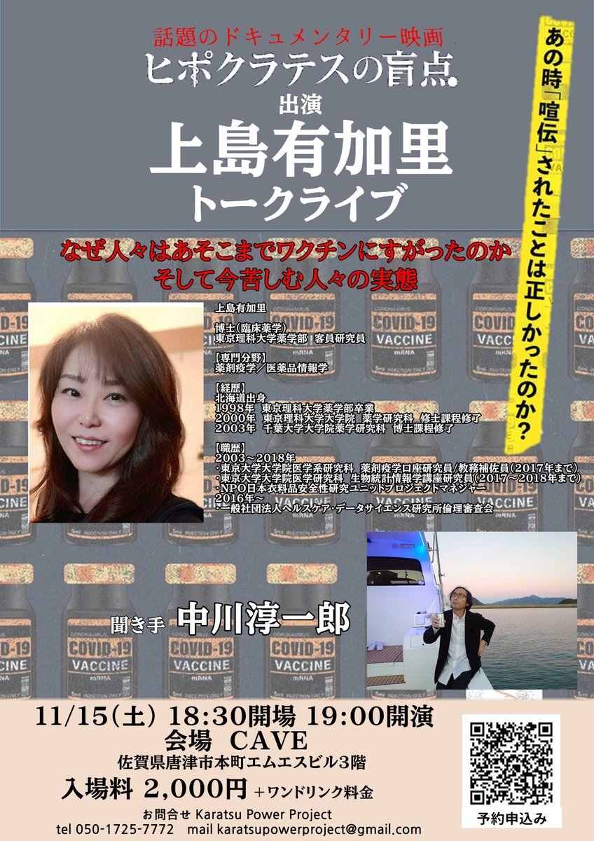 話題作〈ヒポクラテスの盲点〉出演者 【上島有加里トークライブ】 11/15(土)o18:30/s19:00 [会場] CAVE 佐賀県唐津市本町 maps.app.goo.gl/yBzCCB1jvw4y3b… [聞き手]中川淳一郎 [Ticket](+1ドリンク料金) ¥2,000- お申込みフォーム docs.google.com/forms/d/e/1FAI… #唐イベ karatsuevent.jimdofree.com pic.x.com/X0Csfg8ZMT