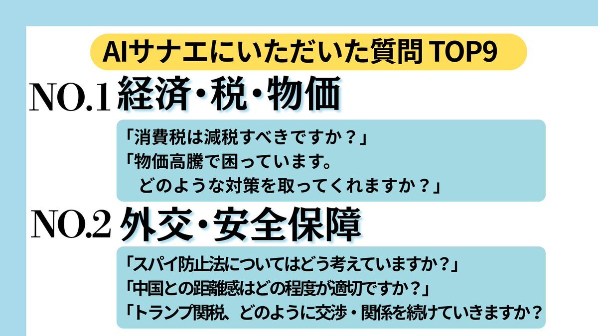 AIサナエに7万件を超えるご質問を頂きました。皆様にご利用いただき嬉しく存じます。 リアルサナエは、政策を実現することで皆様の問いに応えていきます。 一つひとつの政策を実現することで、失われた政治への信頼もまた、取り戻すことができると考えております。