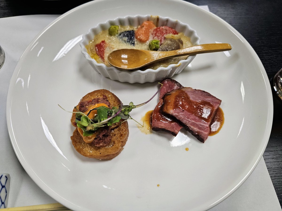 明治元年創業の老舗割烹料理屋。 葛飾区四つ木、木下川薬師近くの「玉子家」で神輿の忘年会。 1階は食堂、2・3階は会食向けの広間。丁寧で凝った料理が次々と出てくる。 あん肝と和食が特に旨く、洋食系やバケットまで抜かりなし。実は1000円以下で丼物も食べられるのが嬉しい。 #葛飾区 #四ツ木 pic.x.com/mHk9xbU2Ql
