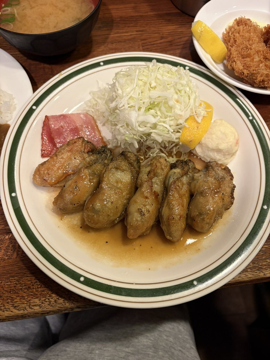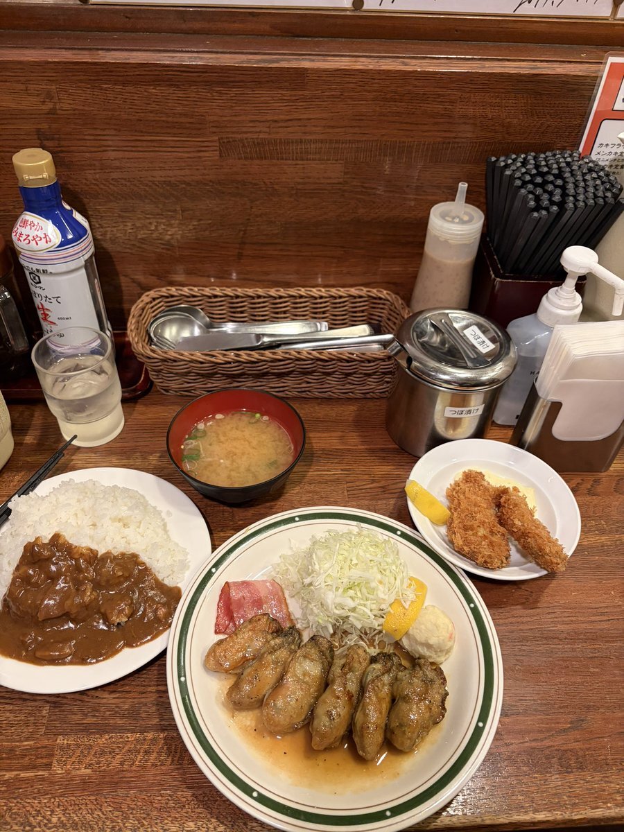 本日の定食 今季初のこちらへ カキバター焼定食+カキフライ+カレーちょいかけ 旨い💯💯💯++ 久しぶりだけど旨いね! まだ並び少なくて良かった これから並びが増えるけどまた行く! 御馳走様でした #かつれつ四ツ谷たけだ #四ツ谷 pic.x.com/KjvekPuCeQ