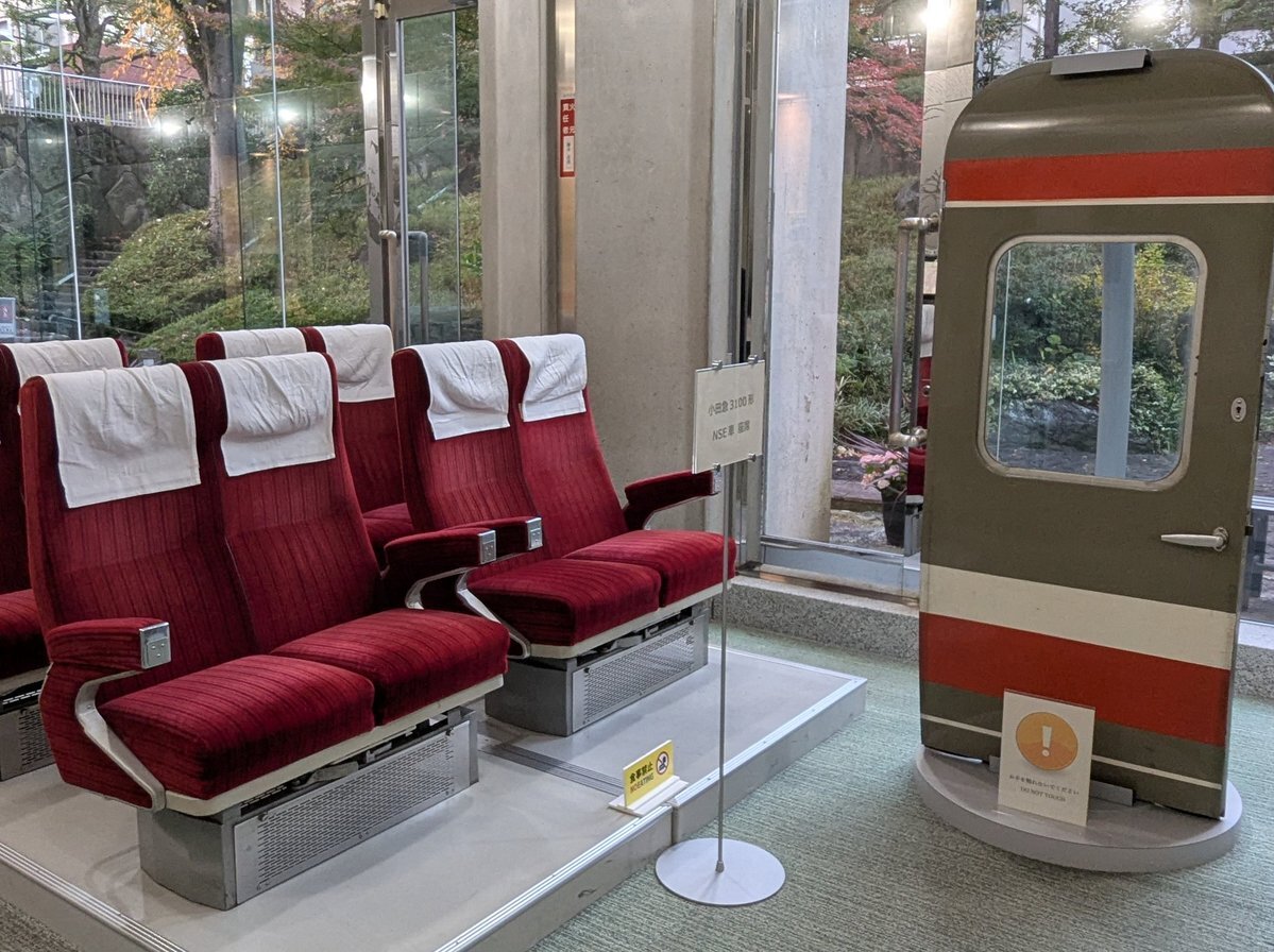 ◤ここにもNSE🔎◢ 新宿区立新宿歴史博物館の地下1階ホワイエに、小田急ロマンスカー3100形"NSE"の運転台・乗降扉・座席が展示されています✨️ #小田急 #ロマンスカー #四ツ谷 pic.x.com/Q8dniWzkj3