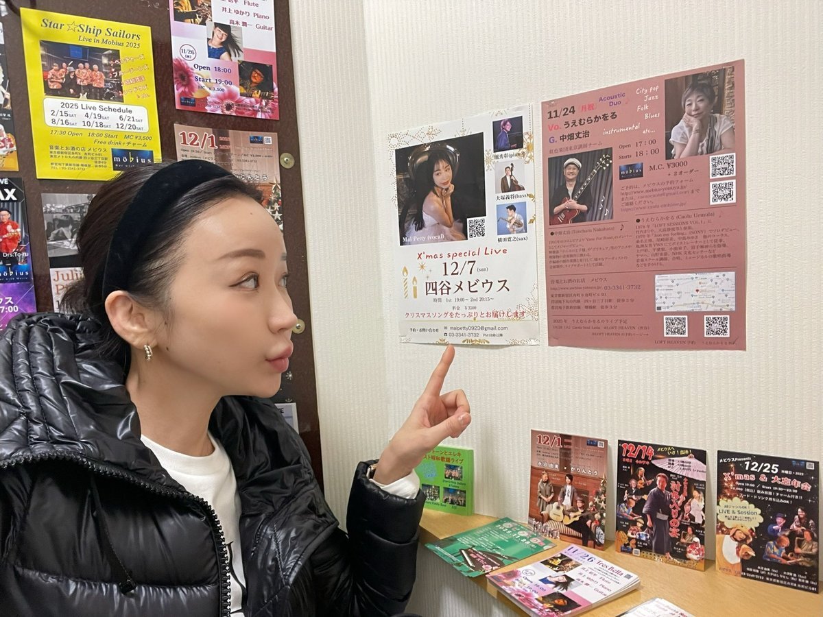 今夜は四ツ谷メビウスへ!! テナーサックス🎷のみなみちゃんライブへ オリジナルかっこよかったな!! トイレに私のフライヤーを貼ってもろーて ありがたいです😭 12/7(日)四ツ谷メビウス 初出演します!!! #四ツ谷 pic.x.com/wMpf3OqI68