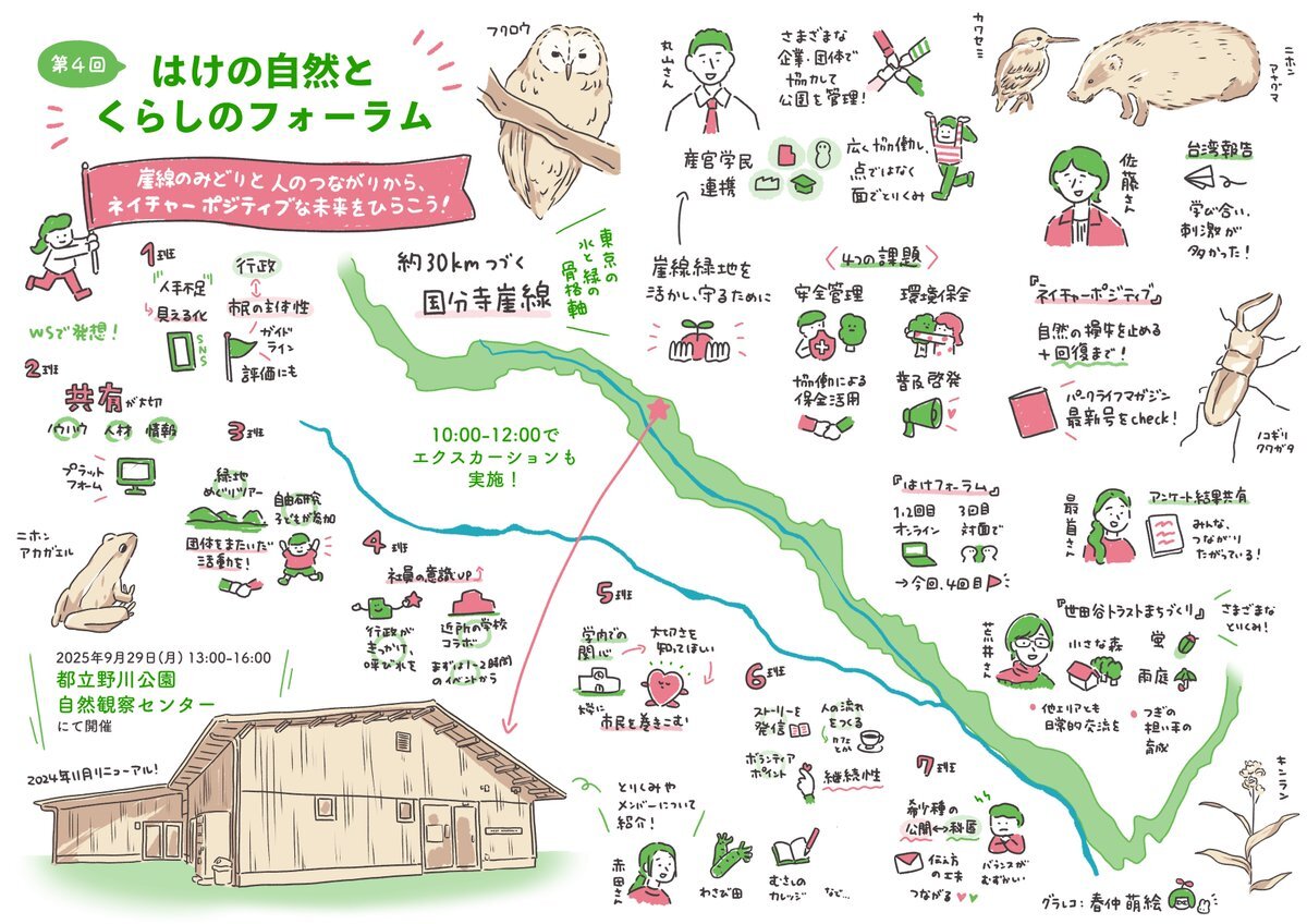 ✨第4回 #はけの自然とくらしのフォーラム にて、 #トラストまちづくり も #世田谷 の話題を提供✨ #武蔵野の公園パートナーズ さんから当日のグラレコ🖊️をいただきました。 今後も、国分寺崖線の自然と人のくらしをつなぐ活動をすすめていきます! #国分寺崖線 #はけフォーラム #地域と自然 pic.x.com/g8cfoYYIXt