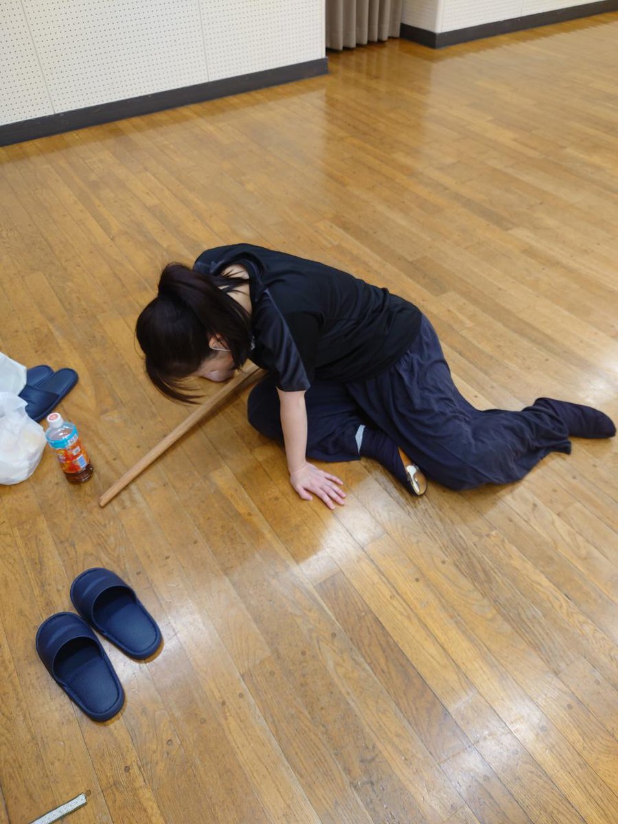 アクション教室⚔️ あららー💦 武内も竹下さんもやられちゃってますね(;・∀・) きっと明日は2人とも筋肉痛で身体がバキバキですね(;・∀・) #アクション #殺陣 #地下足袋 pic.x.com/oOCqBjmLBX
