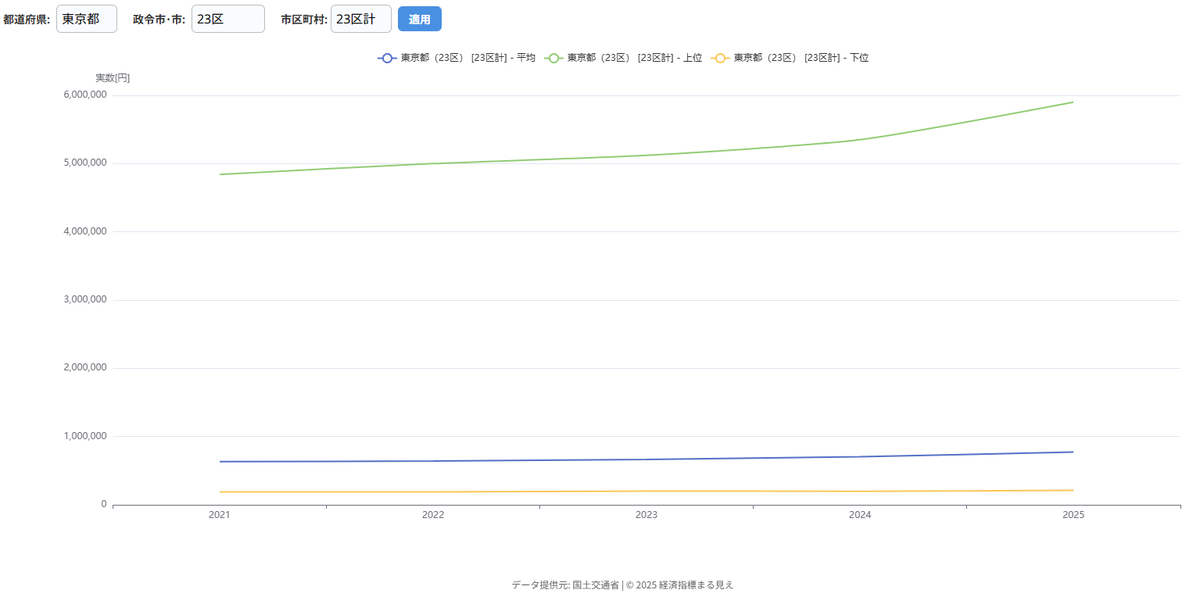 【☺️新指標☺️】 こんばんは😃 マンションが欲しすぎて、 #経済まるみえ地価公示の推移を確認してみました📷 年々増加していますね📷 東京23区は庶民には手が届かないお値段になってます😰 日本全国対応してますので、確認してみてください! #地価公示 #地価 #マンション #不動産 #国土交通省 pic.x.com/D84Zn5Mcr6