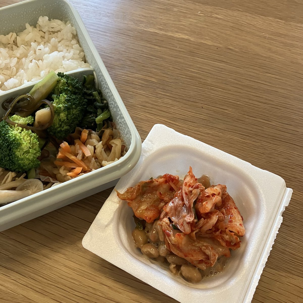 脚トレの日だけどうっかり自転車でジムへ(片道20分弱) …帰りめっちゃ後悔したー😭😭 それくらい追い込んだ私を労るためにキムチ納豆食べる。 #地味弁 pic.x.com/mNdsmlldd0