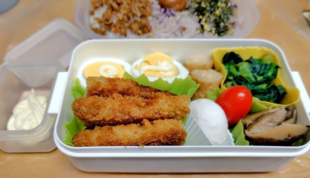 何も考えずに詰めてると低タンパク質な弁当になる…。 だって色がいっぱいあったら楽しいじゃないの。 納豆!納豆!! (夫のはちゃんと肉や卵が入ってます) #地味弁 じゃない。今日は #やや派手弁 pic.x.com/XJNBKm3EOD