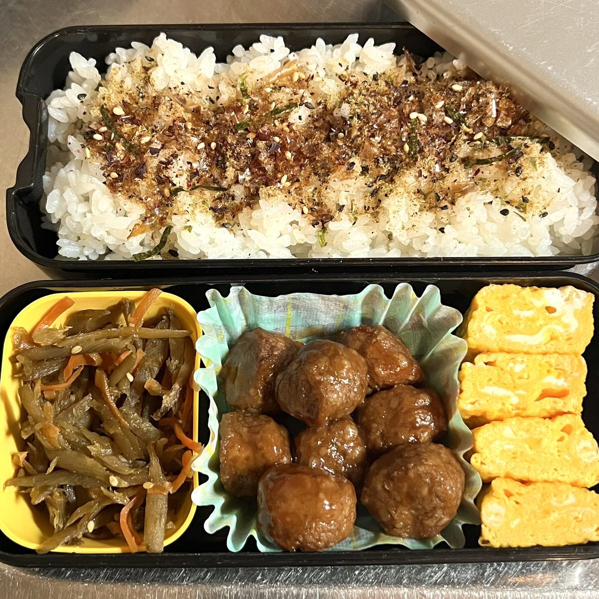 2025/12/15 ①イシイのミートボール ②だし巻き卵 ③きんぴらごぼう 終業式まで午前中授業だけど 放課後は練習なんやて がんばれー٩( ᐛ )و #今日の弁当 #偏食っ子 #地味弁 #肉嫌い #ミンチはOK🙆🏻‍♀️ #魚は好き #副菜だけ弁当🥬 #ワンパターン弁当 #弁当箱はアスベル #それでも母はラクしたい pic.x.com/PyBLueTOto