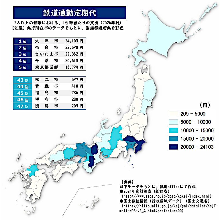 ‘ 正解は・・・ <鉄道通勤定期代> 大津市がトップ! 大阪や京都への通勤が必須か。 関東も都心部への通勤の様子がうかがえる。 今日もたくさんのリプありがとうございます。 よい夜を! ★ファミマビジョンで出題中★ gate-one.co.jp/news/info/8326/ #鉄道 #通勤 #定期 #地理 #GIS #クイズ #統計 pic.x.com/ELhtPGKep4