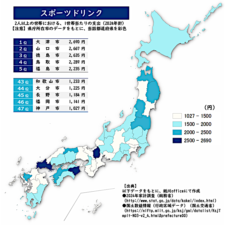 ‘ 正解は・・・ <スポーツドリンク> 大津市がトップ! 大塚製薬の徳島市も色が濃い。 スポーツだけでなく病気の時もお世話になります。 今日もリプありがとうございます。 よい夜を! ★ファミマビジョンで出題中★ gate-one.co.jp/news/info/8326/ #スポーツドリンク #地理 #GIS #クイズ #統計 pic.x.com/ndbdRJJkpM