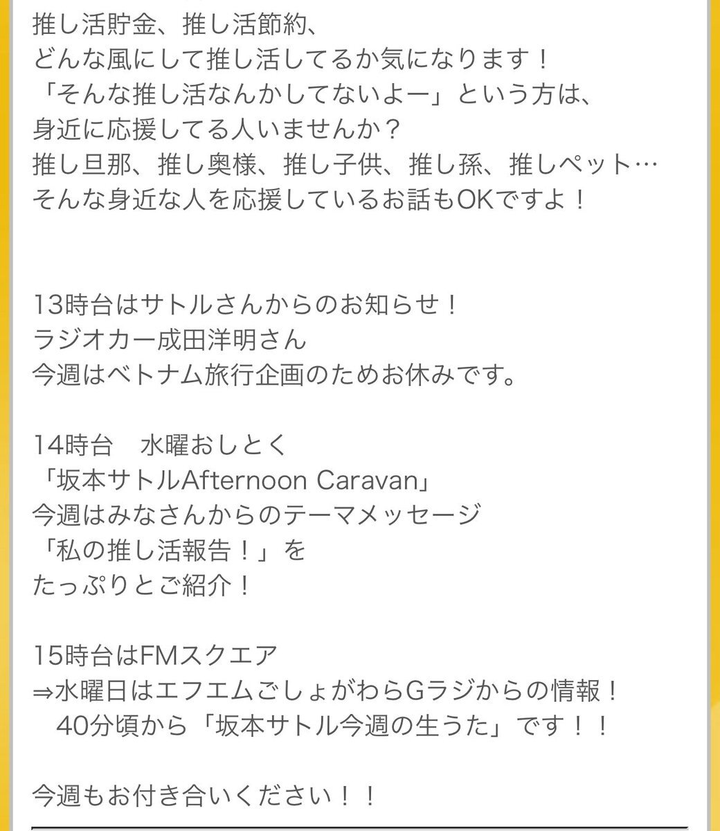 【本日の #坂本サトル】 ●11月12日(水)⏰11:55〜16:00 📻「#らじすく !エア」 (RABラジオ) 📩radisq@rab.co.jp ✉️テーマ 「私の推し活報告!」 アナタは推し活してますか? 誰を?何を?どれくらい? 推し活貯金?推し活節約? アナタの推し活事情を教えてください!   radiko.jp/share/?t=20251…