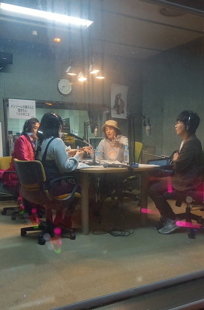 【ミリオンレディオ】 スタジオの4人の様子✋ ちゃんと席に着くまでの時間「ふざけ倒して」アリーナのリスナーは爆笑してました🐱❗ (スコップ三味線とか) #坂本サトル #ミリオンレディオ #モモ #小山内創祐 #メンソーレ川端 pic.x.com/xOpsxKTw2w