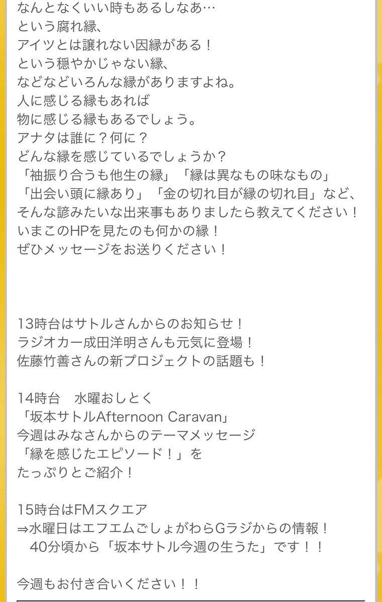 【本日の #坂本サトル】 ●11月5日(水)⏰11:55〜16:00 📻「#らじすく !エア」 (RABラジオ) 📩radisq@rab.co.jp ✉️テーマ 「縁を感じたエピソード!」 本日は「縁結びの日」! 良縁、悪縁、腐れ縁、譲れない因縁…など アナタは誰に?何に? どんな縁を感じていますか? radiko.jp/share/?t=20251…