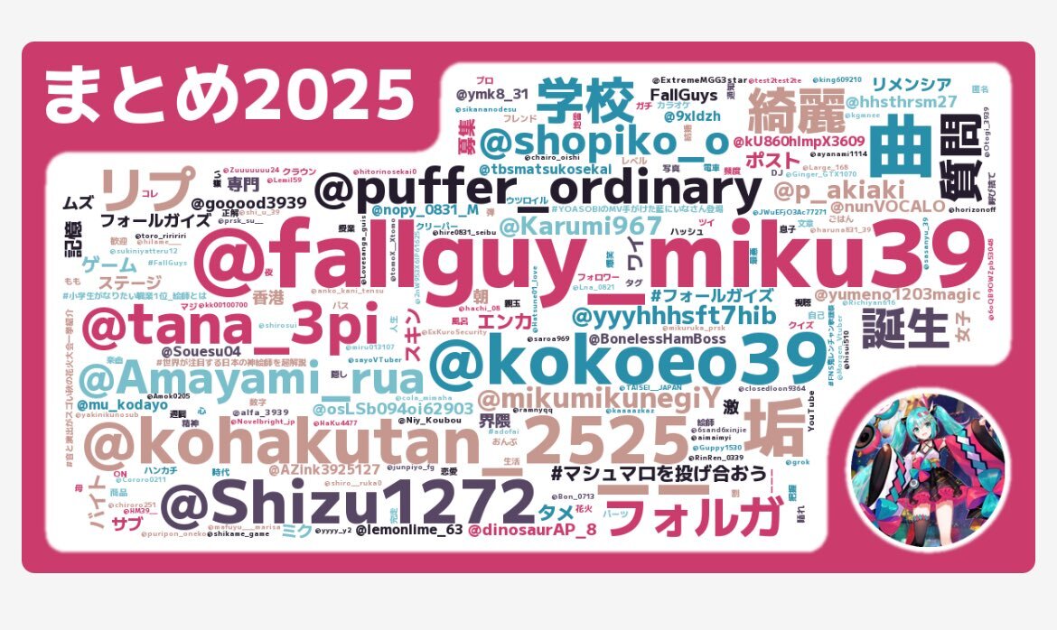 今年のポストでよく出てくるワードは、#垢 #フォロー 画像をクリックして #2025まとめったー をチェック↓↓ 12月31日まで oshi-word.emotion-ai.net/oshiword/Q2JSL… 相互の名前ガチおもろ