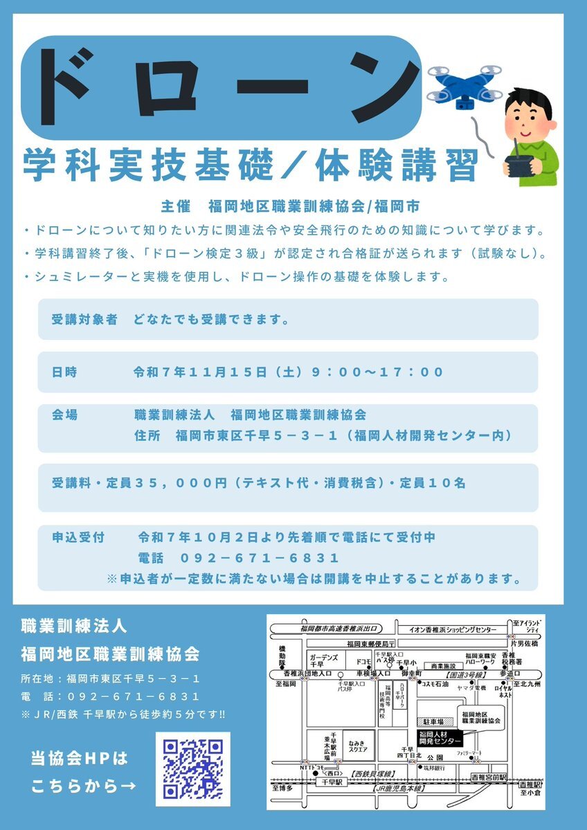 11月開講のドローン学科実技/体験講習の申込受付を開始しました。ドローンに少しでも興味のある方にはお勧めです。申込はお電話で。電話092-671-6831まで。#ドローン #基礎 #体験 #講座 #福岡市 #東区 pic.x.com/jMl4rclafk