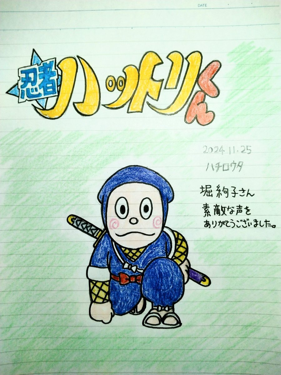 忍者ハットリ・カンゾウ、ただいま参上!! 去年亡くなった声優の堀絢子さんの命日18日は過ぎてしまいましたが⋯忍者ハットリくんのイラストを再掲載。 #忍者ハットリくん #堀絢子 pic.x.com/aRUmNXylVH