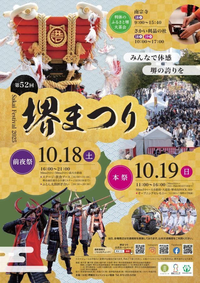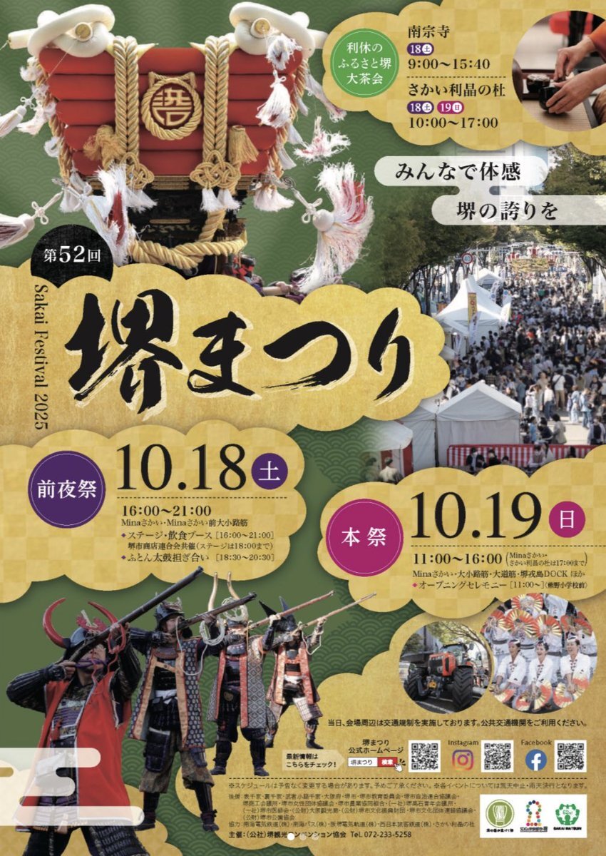 【堺市】「第52回堺まつり」は10月18日(土)・19日(日)開催!堺最大のイベントへ行こう machitto.jp/sakaisemboku/1… 「利休のふるさと堺大茶会」やステージパフォーマンス、地元グルメ、体験型の企画など、世代を問わず楽しめるコンテンツが盛りだくさん✨ #堺市 #堺市堺区 ※画像は全て主催者提供 pic.x.com/3QKtoSVtV7