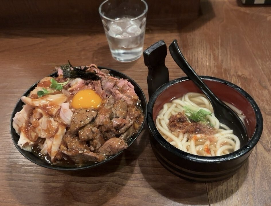 # #ひだまり庵本店 #3種盛肉丼 1週間が始まった気がする… かす煮そばの麺がうどんになっててボリュームアップありがたいです pic.x.com/isZVLOikm7
