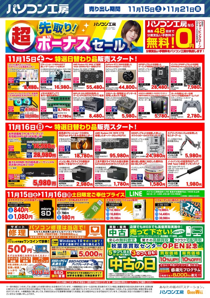 🎉超先取り!ボーナスセール🎉 大好評開催中!! 今週はグラボが熱いです! 乗換やメモリが高騰中の今セール品を狙ってみるのはいかがでしょうか? ご来店お待ちしております! #パソコン工房 # pic.x.com/mLiNmCL16k