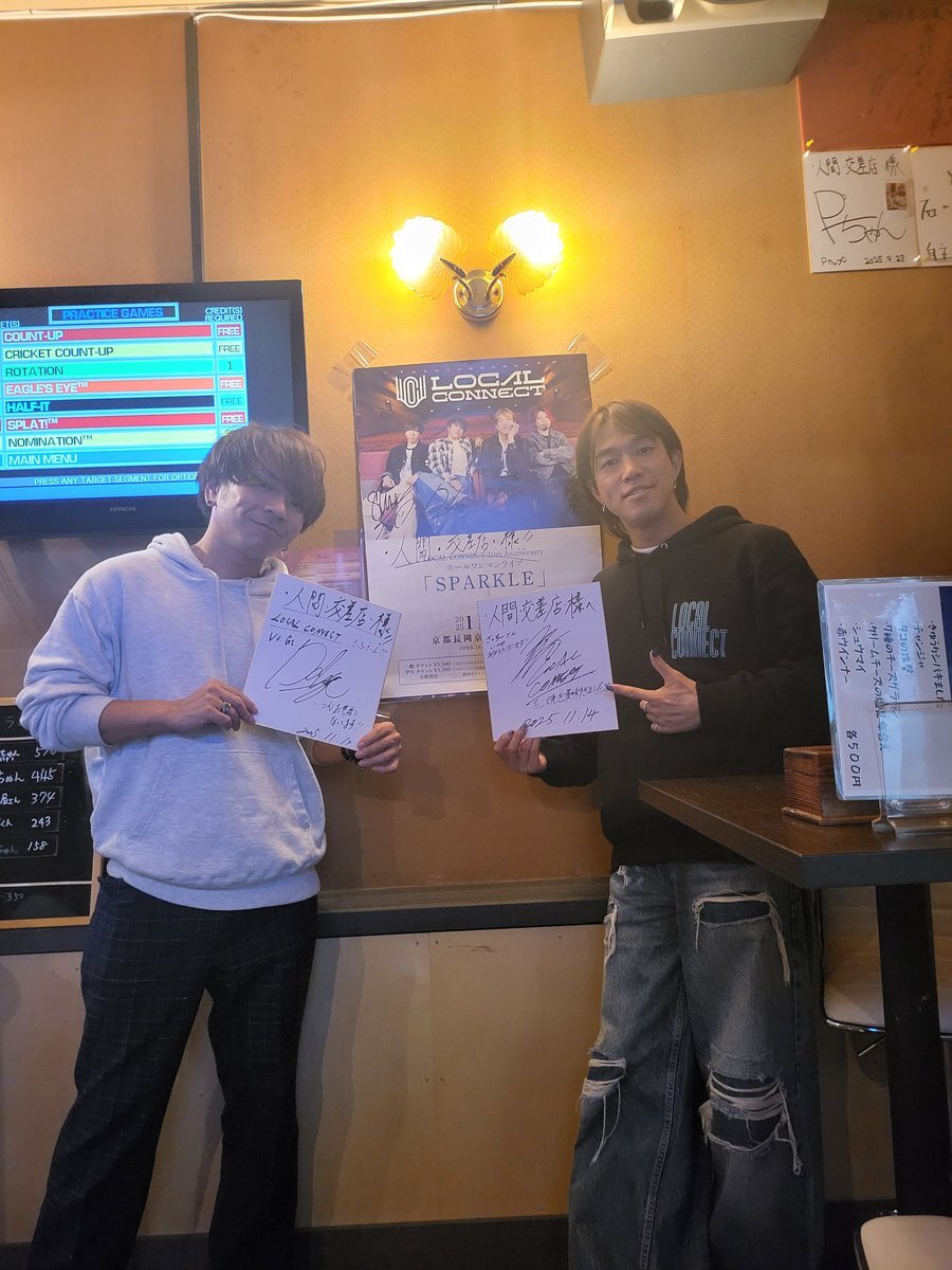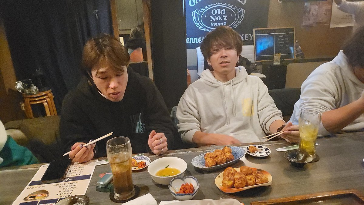 歌手のローカルコネクトのボーカルのだいき君といさと君が来店して頂きました\(^_^)/ 日テレ系アニメ俺物話!!やウラマヨやモモコのOH !ソーレ!みーよ!と数々のテーマソングに使われている彼等!応援宜しくお願い致します! 又食べに来てねぇ~ # #たこ焼き #深夜 #カラオケ #ダーツ #ローコネ pic.x.com/bXSUl0nWUY