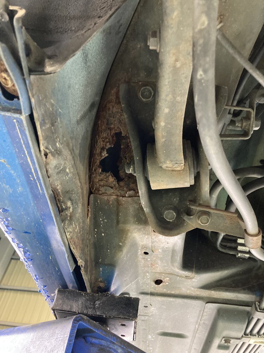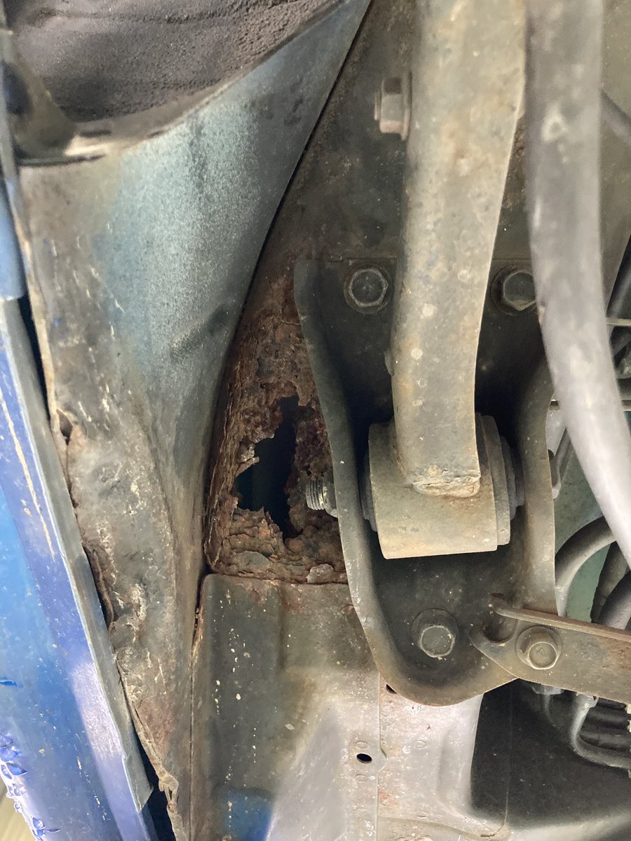 塩害 塩害の穴はかなりやばです。 ぽりぽり剥がしたらウェハースの様に…かなり深刻です。 サスペンションのアーム付け根付近 特に重要な場所です。 気が重くなる… 車高調も錆び様び…減衰調整出来ず DIYでやれる所までやります。 #塩害 pic.x.com/JcaMgIqxKx