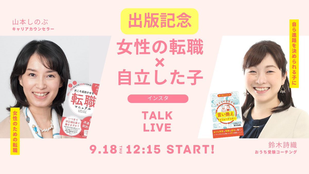 【出版記念ライブ】9/18(木) 12:15~ 『キャリアカウンセラー」山本しのぶさんと インスタLIVEを行います! instagram.com/ouchi__juken/ テーマは!『女性の転職×自立した子』 #受験 # #中学生 #高校 #子育て #声かけ #転職 #キャリア #自立 pic.x.com/qm3EWDmCum