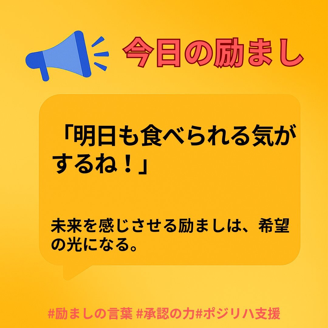16 希望を育てる支援 「明日も食べられる気がするね!」 未来を感じさせる言葉は、 今の行動を支える希望の灯になります。 #声かけ #未来志向 #リハ栄養 pic.x.com/KMQ7aT2wnD