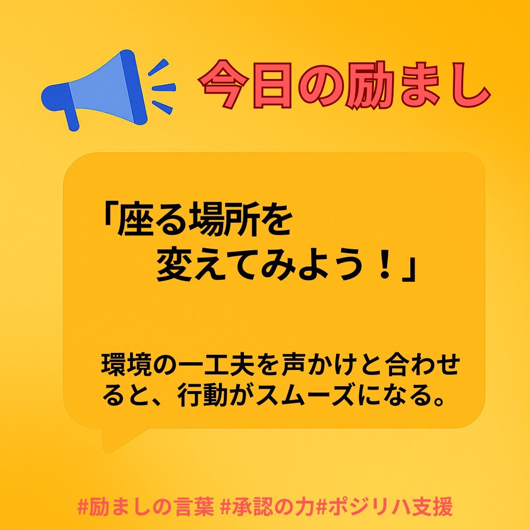 15 「環境を整える支援」 「座る場所を変えてみよう!」 声かけと環境の工夫を合わせると、 無理なく行動を促せます。 支援のきっかけは、ほんの小さな環境から。 #声かけ #環境調整 #リハ栄養 pic.x.com/e3OwzO4Puy