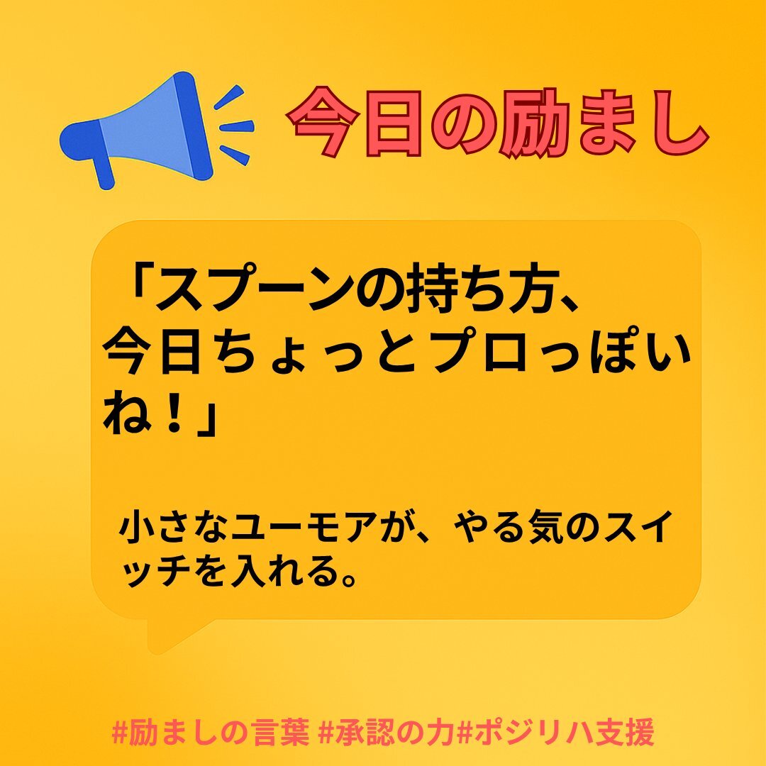 17 ユーモアと笑いの支援 「今日のスプーンさばき、プロ級!」 少しの笑いが、挑戦を応援する力になります。 声かけに“遊び心”を添えてみましょう。 #声かけ #ユーモアの力 #リハ栄養 pic.x.com/Iq1PxKCDMd