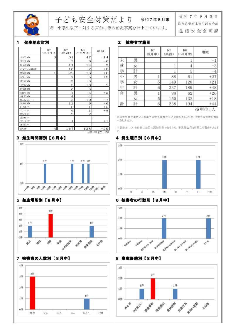 ☆子ども安全対策だより R7.8月末☆ 【#生活安全企画課#子ども安全対策だより #防犯情報 #防犯対策 #子ども #声かけ #前兆事案 子ども安全対策だよりは、ホームページにも掲載されています。 pref.shiga.lg.jp/police/seikatu… pic.x.com/zgz9tlR19H