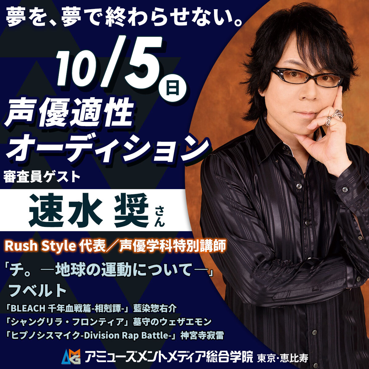 🎙️Rush Style 代表・速水 奨さん登壇✨ 声優適性オーディション&声優学科説明会開催‼️ 第一線で活躍する声優から直接学べる貴重なチャンス🎶 夢への一歩をAMGで踏み出そう! 📅詳細 amgakuin.co.jp/events/62851 #声優志望 #AMG声優 #声優オーディション #速水奨 さん #声優になりたい #養成所 pic.x.com/l8qRYxQj7W