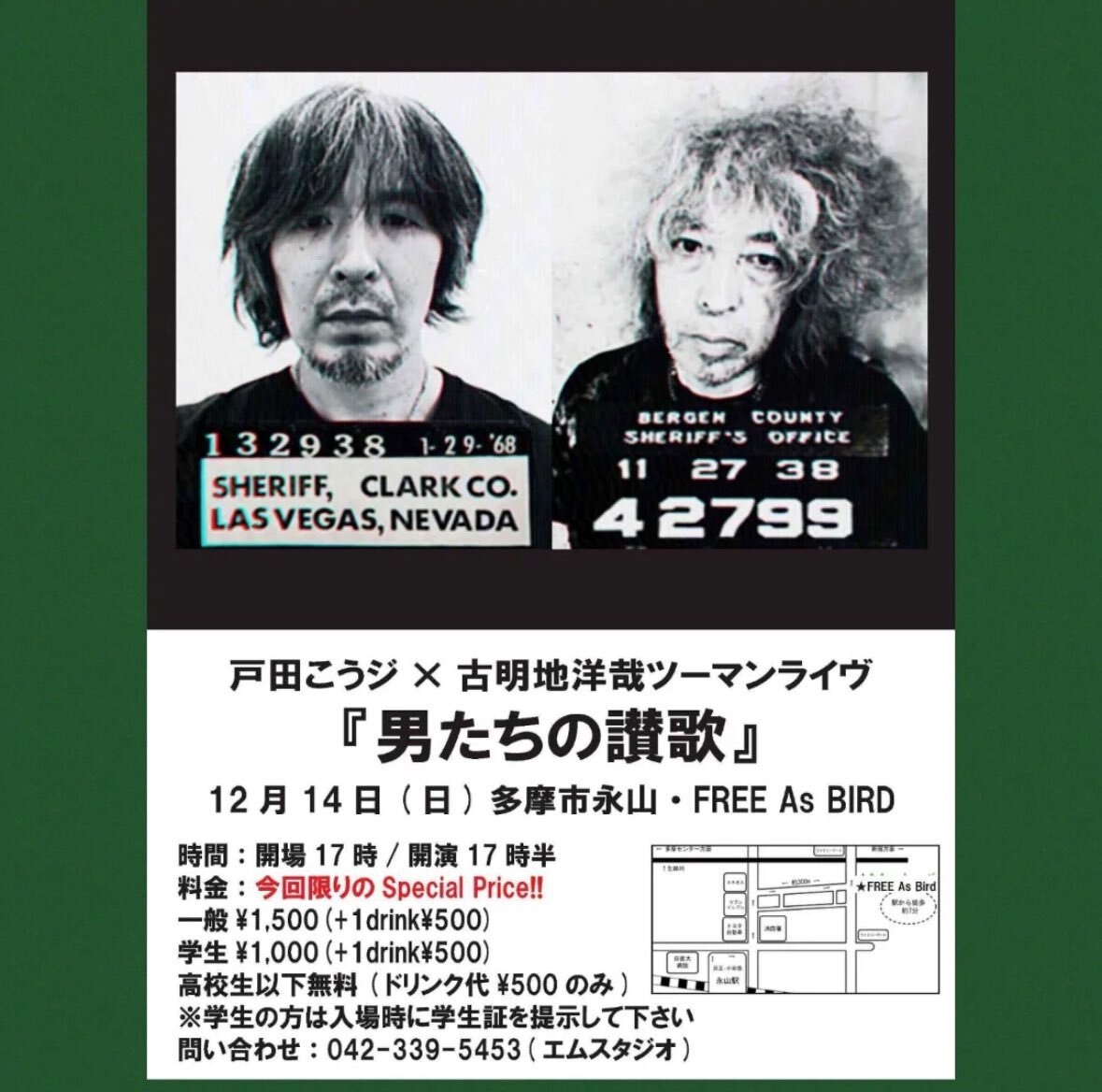 12/14。永山店併設のライブハウスFABにて、戸田こうジ×古明地洋哉のツーマンライブとなっております。この日全てを超えて2色の声がFABを見たことのない色へと変わることでしょう。是非お越しください。 #ライブハウス #ツーマンライブ #freeasbird #永山 #唄 #音楽 #ライブ #声 pic.x.com/hXjriu7205