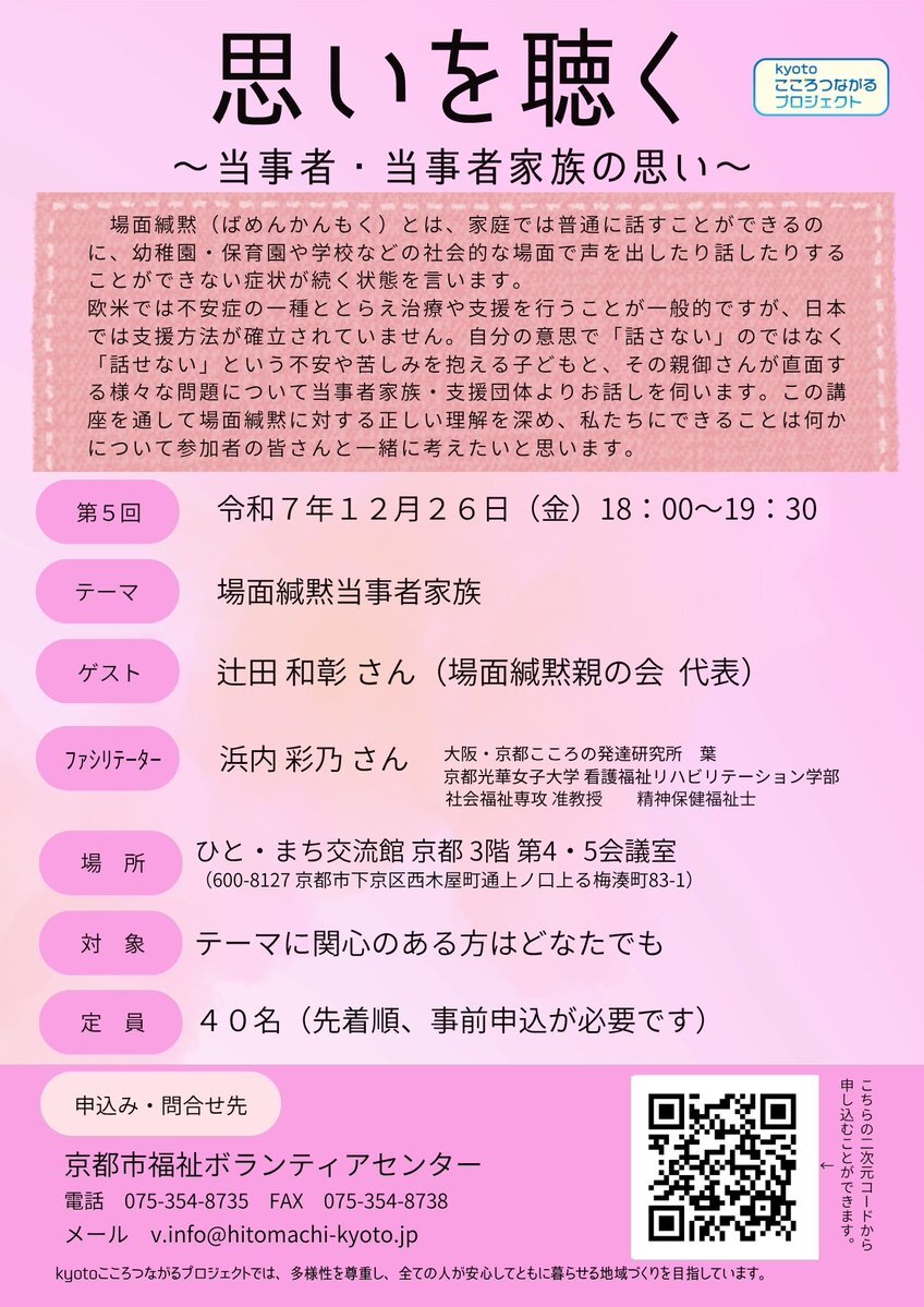 \講座/当事者や当事者家族の声を聴く👂 様々な立場の方の #声 を直接聞く会です! 日時:12/26(金) 18:00-19:30 場所:ひと・まち交流館 京都(最寄駅:「清水五条」など) 募集先:京都市社会福祉協議会 京都市福祉ボランティアセンター @kyoto_vora 詳細 ☞ kvnet.jp/post-event/k25… #N258 pic.x.com/Lchxr6H3bW