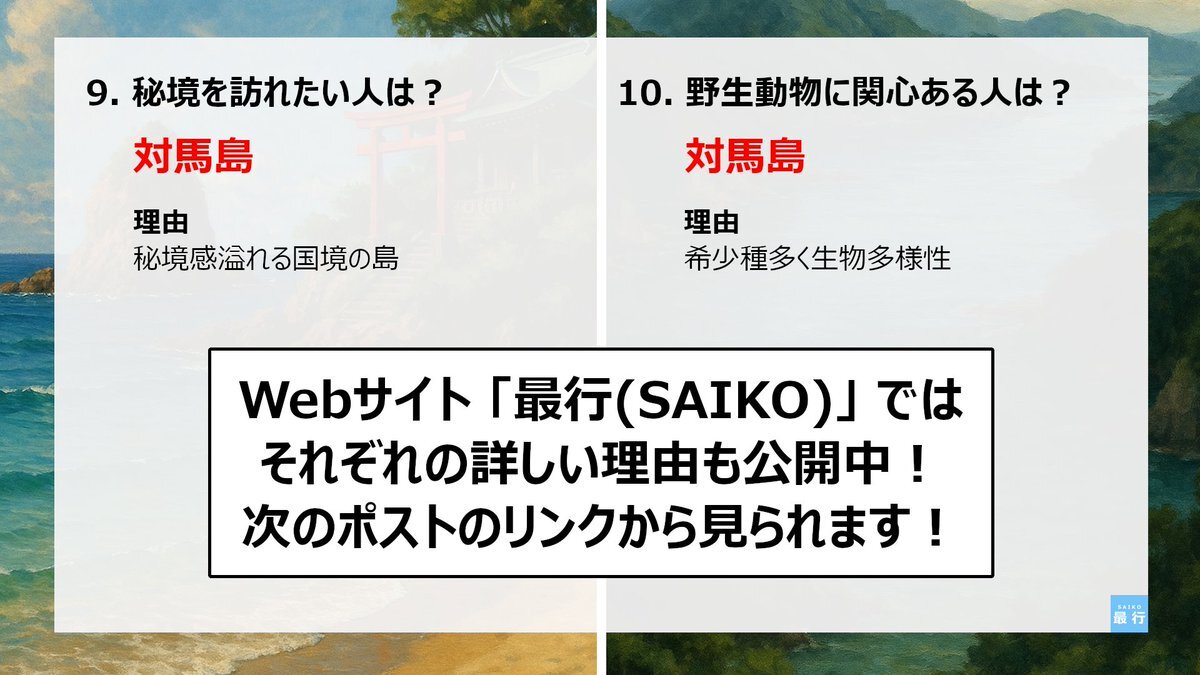 #壱岐島 」と「 #対馬島 」のどっちがオススメか判断した10視点の詳しい理由はコチラから▼ goplacebest.com/p119-ai/