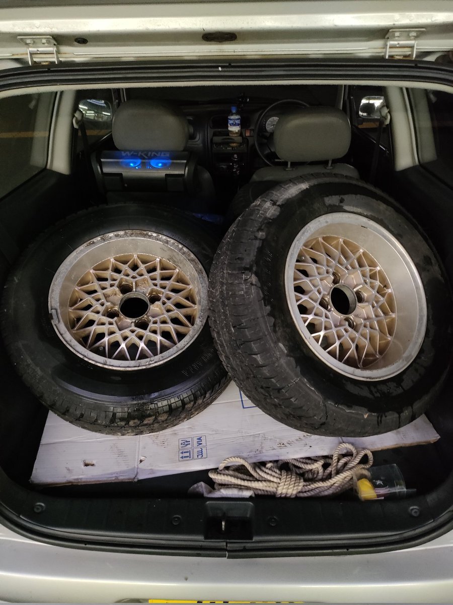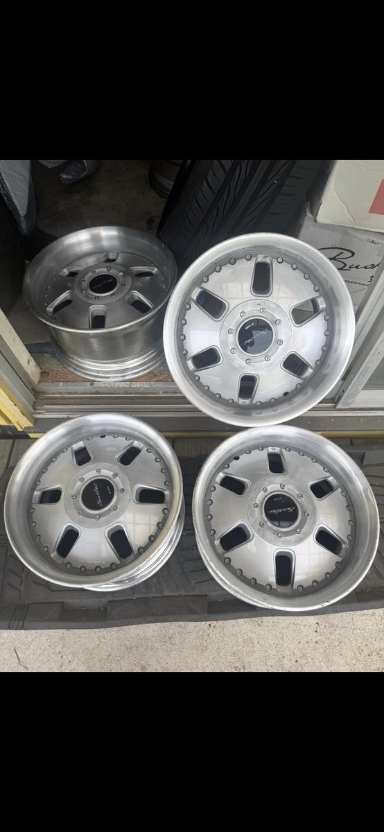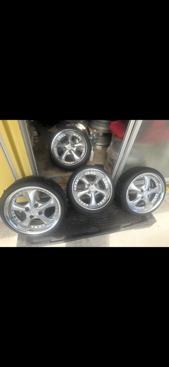 Cleave Racing FL53 17×9.0J +18 5H-114.3 ガリ傷あり。多分振れ有り。 クラック無し。 タイヤ2本ワイヤー出てる。 残り2本片減り大。 4本セットで6万で買う人いますか? ノークレームノーリターン。 即決なら安くします。東京から。 #売ります #拡散希望 pic.x.com/nHgsbEiC31