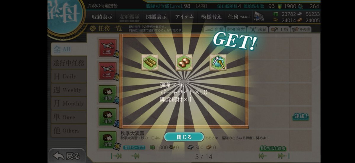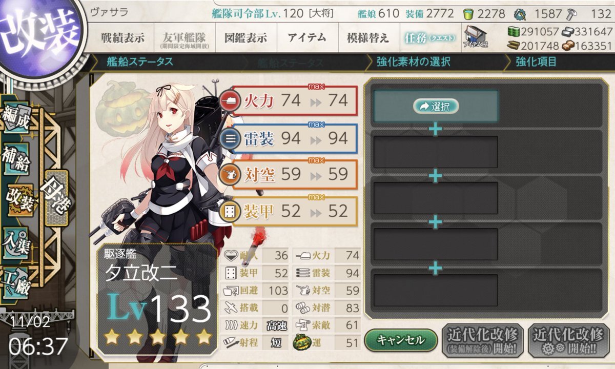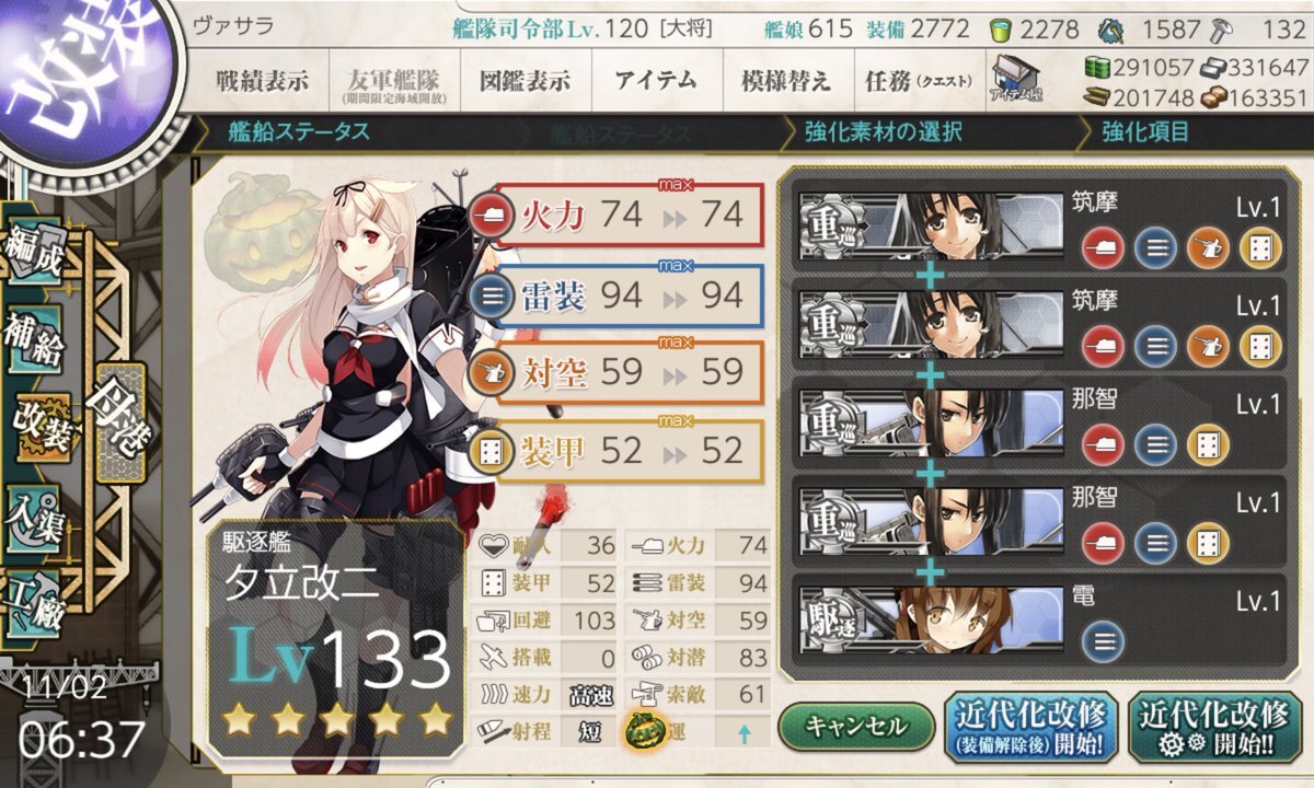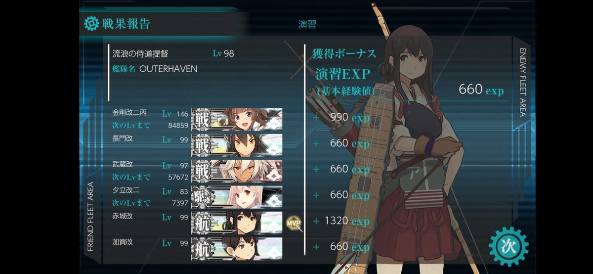 艦これ アプリ🚢⚓😃では。11月10日 : 午前の演習 、3回クリアでござる🚢⚓🤼‍♀️📝🔔😺。 #艦これ #午前の演習 #演習で練度向上 #第一艦隊 #夕立 #航空優勢 #日進 pic.x.com/W2dGFgmIJv
