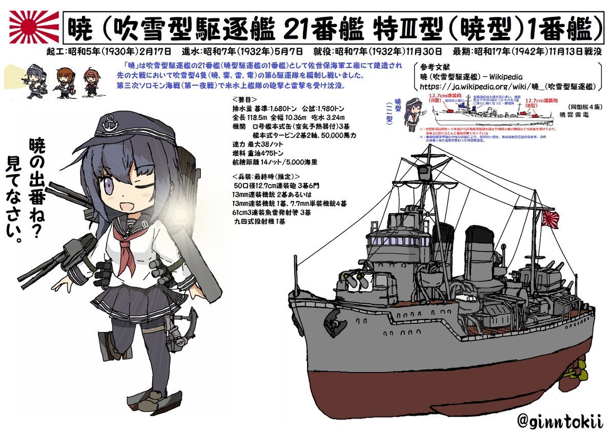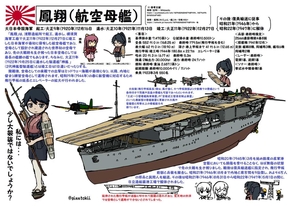 🎺おはようございます! 木曜日の朝です🌅 今日、11月13日は #日本海軍 航空母艦「#鳳翔」#進水日 大正10年(1921年) 軽巡洋艦「#木曾」着底 駆逐艦「#曙」「#初春」戦没日 昭和19年(1944年) マニラ湾停泊中に米艦載機の攻撃により また駆逐艦「#沖波」「#秋霜」も沈没もしくは大破着底状態 #艦これ