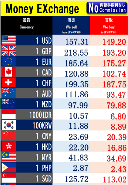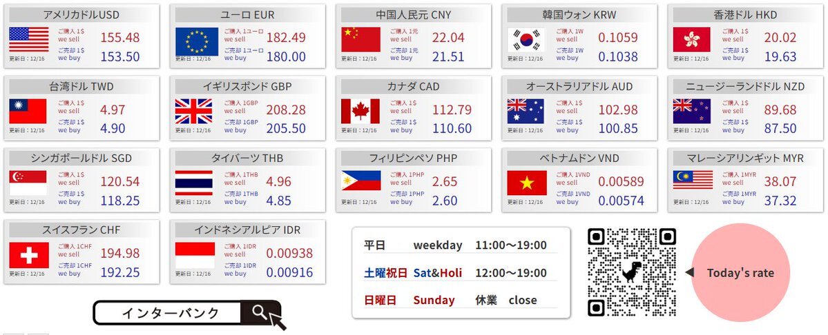 【12月16日更新】 本日の外貨レートです😊 お買取りの際、お断りさせていただく場合がございます 予めご了承くださいませ ※国際送金(WU)実施しております 受付時間:12:00~17:00 ※WU受付時間のみ営業時間とは異なります ご来店お待ちしております #外貨両替 #両替 pic.x.com/IOOMIXUO7w