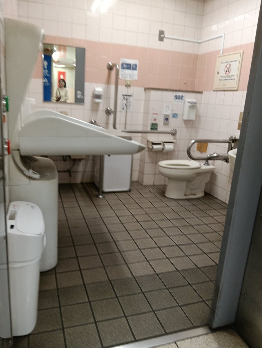 地下鉄桜木町駅の多目的トイレ、このタイプは重たくて上げる事が出来ないから、駅員さんに畳んでもらいました。この状態では車椅子が入るのは苦戦するから… 使い終わったら上げてもらいたい。 #多目的トイレ pic.x.com/FzGRCl15Mq