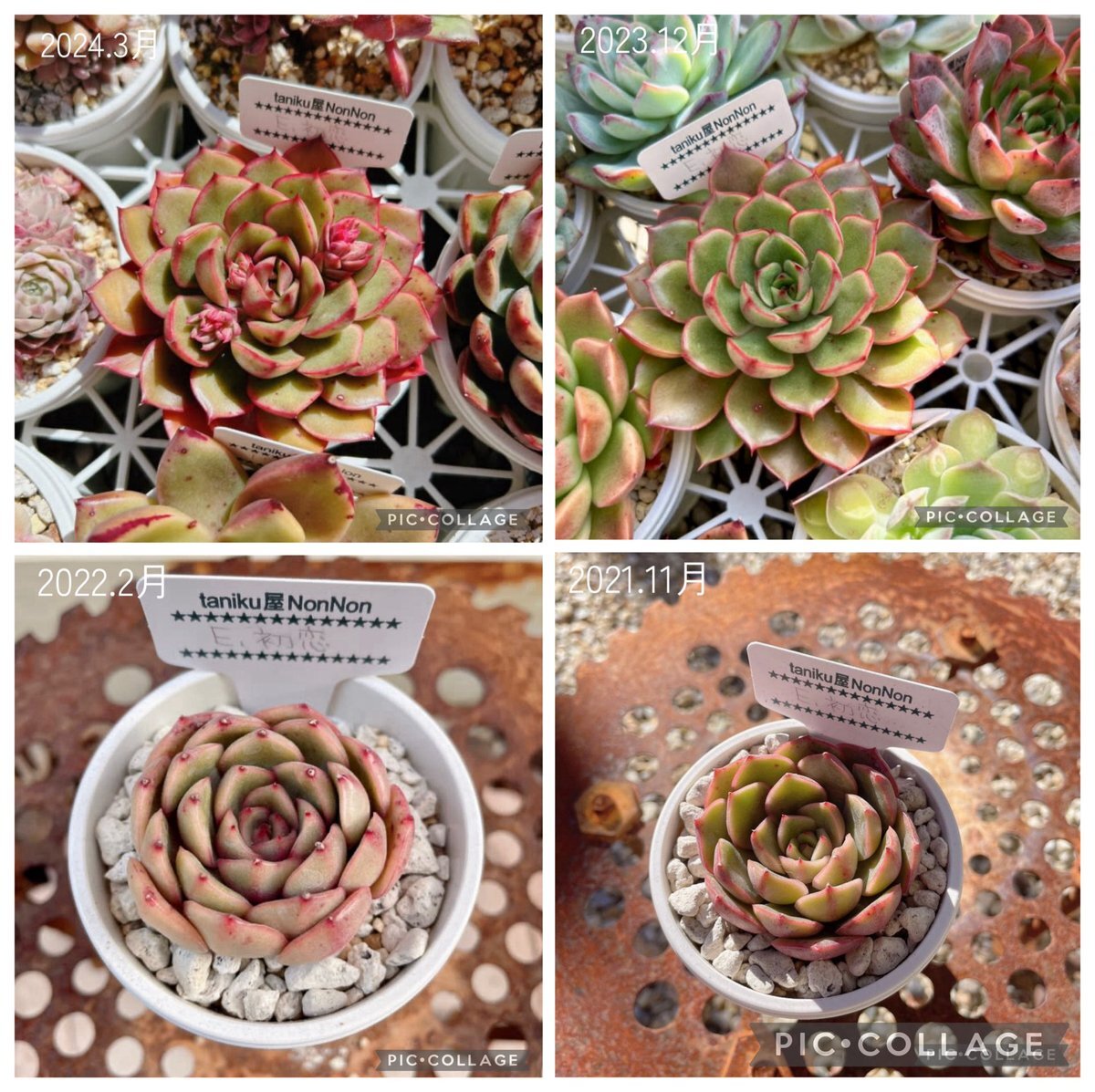 #beforeafter #薄氷 白牡丹は気難しいけど 薄氷はマイペース😊 ①2025.12月 ②2025.5月 ③2022.4月 ④2021.1月 #多肉 #多肉植物 #グラプトベリア #成長記録 pic.x.com/HhQWUNT6Gz