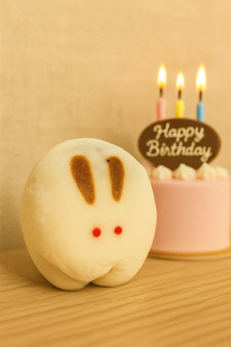 🐰「ミッキーマウスさん、お誕生日おめでとうございます!」いつか同じステージで共演できる日を夢見て…✨ (まずは立てるようにがんばります) #うさぎ大福 #ミッキーマウス誕生日 #夢はでっかく pic.x.com/285005uNQq